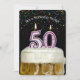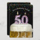 Numero de velas de 50 anos em caneca de cerveja com confete colorido em preto para o convite de 50 festas de aniversário.