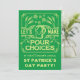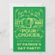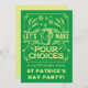 Celebre o Dia de São Patrício com esses convites de festas engraçados. Feitos em verde e amarelo ouro de shamrock, estes convites incluem a linha "Vamos Make Pour Choices!" com uma imagem de cerveja, cevada, saltos, pavimentação, ferradura e muito mais. O resto do texto - frente e verso - é facilmente personalizado através dos modelos fornecidos. Divirta-se com a celebração do Paddy com estes convites humorísticos.