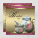 Convites de festas de chá de noz rosa e ouro elegantes. Personalize a parte frontal e traseira do seu evento.