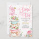 Convite Festa De Chá chá de panela Rosa E Dourada Floral