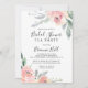 Este elegante convite de festas de chá de chá de panela floral, cor-de-rosa, é perfeito para um chá de casamento moderno. A design apresenta rosas rosas desenhadas à mão e peônias com folhas verdes e cinzas, inspirando beleza natural.