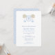 Este design apresenta um monograma de letras solteiros (pode ser do primeiro nome do bebê ou do sobrenome da família). A crista é flanqueada de cada lado por uma laranjeira estilizada em um plantador de Jar Ginger. O reverso apresenta um padrão de "chave grega" azul claro e branco. Eu defini o modelo para um Chá de fraldas, mas todos os campos de texto são personalizáveis para suas necessidades. Você pode mudar a cor azul-clara no reverso para qualquer outra cor de sua escolha alterando a cor de fundo na ferramenta design. Abaixo da caixa de personalização do texto, clique para "personalizar mais".