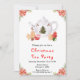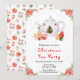 Este convite elegante e festivo para festa de chá de Natal apresenta um bule de chá e biscoitos de gengibre. Nos cantos estão lindas flores de poinsettia vermelhas. O texto combina fontes manuscritas e sem serifa para um visual elegante e moderno. Isso é perfeito para um brunch de Natal ou festa de chá.
