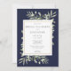 Com delicadas folhas verdes em aquarela sobre um fundo azul marinho, este convite chic para festa de chá de noiva pode ser personalizado com as informações do seu evento de celebração especial. Criado por Thisisnotme©