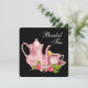 Convite de festa de chá de noiva com fundo preto elegante com bule de chá, xícara de chá e cupcake com bolinhas cor-de-rosa e branco. Este convite de festa de chá de noiva rosa e preto é facilmente personalizado para a sua festa ou evento, adicionando os detalhes do evento, estilo de letra, tamanho e cor da fonte e texto.