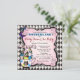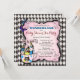 Convite de chá de bebê do Chapeleiro Louco com xícaras de chá em um fundo xadrez rosa e preto vintage. Este convite de chá de bebê do País das Maravilhas é facilmente personalizado para o seu evento, basta adicionar seus detalhes no estilo de letra, cor e texto de sua escolha.