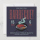 Convide sua família e amigos para algo que eles mais amam, seu churrasco! Tipografia vermelha grande acima de uma churrasqueira preta com uma imagem gráfica de um bife e frango, fumaça esverdeada subindo. Fundo azul marinho. Modelos de palavras fáceis de refazer e perfeitos para convidar os vizinhos, reuniões de família, eventos de boas-vindas, festas na piscina ou aniversários especiais. Qualquer hora é um bom momento para um churrasco!