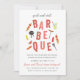 Um convite de festa de churrasco de verão com desenhos de churrasco.