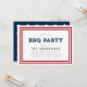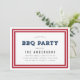 Este convite de festas de churrasco apresenta bordas vermelhas escuras na frente e um padrão de estrelas brancas e azuis no verso. Personalize-o substituindo o texto do marcador de posição. Para obter mais opções, como alterar a fonte, seu tamanho e espaçamento entre letras, clique no botão "Personalizar". *Observe que a Marca d'água do Zazzle que aparece na visualização de zoom NÃO aparecerá no produto impresso final. © Rosewood e Citrus