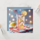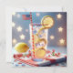 Um cocktail de festa com uma pequena bandeira americana e fatias de limão em pano vermelho e branco marcado para um convite do partido de churrasco do Dia da Independência. Todo texto é editável.