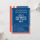Conte a sua família e amigos sobre sua festa de churrasco de 4 de julho de verão com este clássico convite vermelho, branco e azul. A frente da design tem a modelo personalizada que a parte de trás tem uma imagem da bandeira americana. Personalize o design clicando no botão "Personalizar este modelo". Design por Ms_Jade. © 2021 Ms_Jade