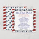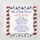Convite de festa de churrasco do Dia 4 de Julho com listras e estrelas vermelhas, brancas e azuis patrióticas.