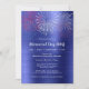 Convide amigos e família para um CHURRASCO do Dia do Memorial com este convite na moda com fogos de artifício em vermelho, branco e azul num fundo metálico azul. Recursos traseiros que correspondem ao plano de fundo. Perfeito para um Dia Memorial, 4 de julho, Dia do Trabalho, ou patriota do partido temático. É fácil personalizar com opções personalizadas. Use o botão 'Personalizar o produto' para personalizar o produto ou adicionar texto.