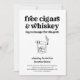 Cigarros & Uísque Gratuitos (em troca de fraldas). Um convite divertido para uma festa de fraldas que coloca em destaque... charutos e uísque! A arte é desenhada à mão.