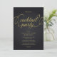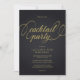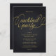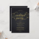 Convite moderno e sofisticado para festa de cocktail em preto e dourado com tipografia elegante.