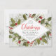 Folhas ocas de coloração aquosa pintadas à mão e bagas vermelhas brilhantes com fundo de madeira leve descortado. Convite de festas Cocktail de Natal com letra de edição fácil. Todo o texto pode ser editado; a escolha da fonte, a cor e o layout podem ser modificados de acordo com o estilo e o gosto.