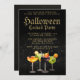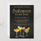 Ilustrações de aquarelas vibrantes de cocktails temáticos do Halloween a preto com tipografia de estilo gótico - preto no tema negro