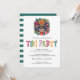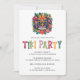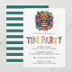 Convite tropical com design de ilustração de cabeça Tiki com folhagem exuberante e padrão listrado no verso - este convite personalizado de festa Tiki é perfeito para uma festa de cocktail, churrasco de verão, festa de piscina Tiki ou festa Luau! Personalize com as informações do seu evento.
