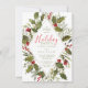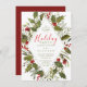 Folhas de cor aquosa pintadas à mão e frutos vermelhos brilhantes. Convite de festas de Coquetel de Feriado com letra de edição fácil. Todo o texto pode ser editado; a escolha da fonte, a cor e o layout podem ser modificados de acordo com o estilo e o gosto.