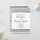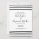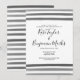 Um convite de festa de compromisso moderno em preto e branco com listras de aquarela em ambos os lados dos detalhes do casamento, com os nomes dos noivos destacados em uma fonte de letra expressiva. Criado por Thisisnotme©
