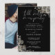 Este convite de festa de compromisso de rosas florais góticas pode ser personalizado com suas informações em tipografia sofisticada com sua foto no verso. Projetado por Thisisnotme©
