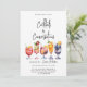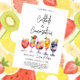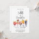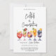 Convite divertido de festa de coquetéis e conversa para um evento de destino com ilustração de coloridas bebidas tropicais.