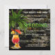 Um recepção de casamento caprichosa ou convite pós-casamento com um coquetel tropical com palmeira em um fundo de parede de pedra escura. As letras neon que dizem "Casamento" podem ser arrastadas ou excluídas. No editor avançado, você também pode escolher um texto neon que diz "Celebre" (na parte inferior de todos os arquivos de texto e imagem). Lindos para um casal que não quer uma celebração de casamento tradicional.