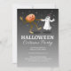 Uma bela festa de Halloween com uma abóbora e fantasma que começou a festa e começou a dançar.