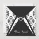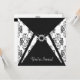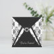 Elegante desenho de damasco preto e branco com diamante e acabamento preto em modelo de convite multiuso. Este modelo de design funciona bem como um convite para uma festa de aniversário, coquetel, festa de feriado, evento corporativo, gala, festa de aposentadoria, festa de formatura e qualquer outra ocasião especial. Personalize com sua escolha de estilo de fonte e cor da fonte, e cor de fundo do verso.