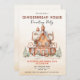 Gingerbird House Decorating Holiday Party Convite com design com uma casa de gengibre de fosco branco.