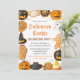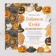 Este convite festivo de Halloween apresenta biscoitos pintados à mão em aquarela em formas clássicas assustadoras, incluindo abóboras, fantasmas, morcegos, aranhas e esqueletos. A paleta de cores vibrantes em laranja, preto e branco é acentuada com detalhes sutis em dourado, criando um visual lúdico e sofisticado. A tipografia limpa em fontes inspiradas em Halloween destaca os detalhes do evento de forma clara e estilosa.