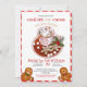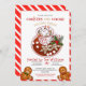 Convite de festa de decoração de biscoitos de Natal editável, festa de chocolate quente, chocolate quente com caneca de cacau de marshmallow de boneco de neve branco