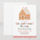 Convide amigos e familiares para uma festa de decoração de casa de gingerbread de Natal com este convite divertido e caprichoso.