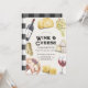 Este convite de festa de degustação de "vinho e queijo" apresenta um fundo bege claro rodeado por uma garrafa de vinho, taça de vinho, queijos, uvas, tábua de charcutaria em aquarela. O verso apresenta um fundo branco com padrões xadrez/preto e branco/plaid. Personalize de acordo com as suas necessidades. Você pode encontrar mais produtos correspondentes na minha loja.
