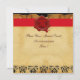 Elegante, design damasco sofisticado em velho pergaminho marrom em cores preto, branco e burgundy vermelho. Cavalheiro italiano do século XVII com um copo de vinho tinto, pedra preciosa rubi vermelha 3D brilhante. Reelaborado a partir do vintage Art Déco. Fácilmente personalizável para festas de aniversário, aniversários e muitos outros eventos.
