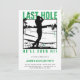 Este convite de solteiro com tema de golfe apresenta a frase brincalhona "Last Hole He ll Ever", com um design em verde, preto e branco para um visual elegante e desportivo. Perfeito para a despedida de solteiro do noivo, combina o entusiasmo de golfe com uma aresta alegre e iluminada. Ideal para homens que procuram adicionar humor e personalidade às suas festividades pré-casamento.