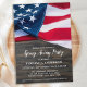 Convites de festa de despedida de Soldado com bandeira americana militar. Estes convites de festa com bandeira americana são perfeitos para uma festa de despedida de um soldado, despedida de implantação militar, celebração de boas-vindas em casa militar, formatura militar e aposentadorias militares. Personalize este convite de bandeira americana com a foto do seu soldado, evento, nome e detalhes da festa.