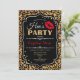 Elegante design preto e branco com brilho falso dourado e padrão de impressão de leopardo. Características de beijo de lábios vermelhos, listras pretas e brancas, confete e fonte de letra manuscrita. Perfeito para uma celebração elegante. Mensagem-me se precisar de mais personalização.