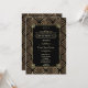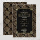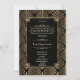 Design Glamouroso no estilo Art Deco Great Gatsby. Apresenta estilo Art Deco, forma em folha de ouro falso e ornamentos, em fundo preto. Use a ferramenta Personalizar para adicionar suas informações. Para itens correspondentes, visite minha Coleção de Estilo Gatsby anos 20 Art Deco Preto/Branco.