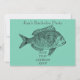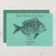 Um convite legal com uma ilustração de tema de pesca de um peixe contra um fundo verde personalizável. Este convite seria adequado para uma atividade de festa de despedida de solteiro de pesca ou qualquer viagem de pesca de aniversário. O texto é totalmente personalizável e pode ser alterado para refletir um tema de aniversário, se necessário.