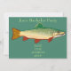 Um convite legal com uma ilustração de tema de pesca de uma ilustração de peixe truta contra um fundo verde personalizável. Este convite seria adequado para uma atividade de festa de despedida de solteiro ou qualquer viagem de pesca de aniversário. O texto é totalmente personalizável e pode ser alterado para refletir um tema de aniversário, se necessário.