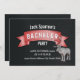Convite de Caça ao Cervo Despedida de Solteiro / Despedida de Solteira Festa com Fita Vermelha e Fundo de Textura de Metal Preto.