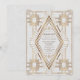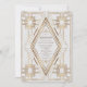 Design de cartão elegante e vintage com um estilo art déco sofisticado dourado falso, ornamentos reais de flor-de-lis em um fundo branco texturizado. Use a ferramenta Personalizar para adicionar suas informações. Para itens correspondentes, visite minha Coleção Romântica Grande Gatsby Dourado e Branco.