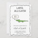 Um convite divertido de festa de despedida com um lagarto sorridente. O cartão é fácil de personalizar com sua redação, fonte, cor da fonte, opções de forma de papel e escolha de tipos de papel. Não é exatamente o que você está procurando? Todos os nossos produtos podem ser personalizados para atender às suas necessidades sem custo adicional. Basta entrar em contato conosco