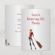 Convite Aniversário Prata Branco com Garota e Bagagem. Personalize para qualquer evento ou aniversário.