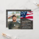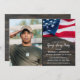 Convites de despedida para soldado com tema de bandeira americana. Estes convites de festa com tema de bandeira americana são perfeitos para uma festa de despedida de um soldado, uma despedida para implantação militar, celebração de boas-vindas a casa para militares, formatura militar e aposentadorias militares. Personalize este convite da bandeira americana com a foto do seu soldado, evento, nome e detalhes da festa.