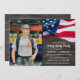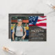 Convites de despedida para soldado com tema de bandeira americana. Estes convites de festa com tema de bandeira americana são perfeitos para uma festa de despedida de um soldado, uma despedida para implantação militar, celebração de boas-vindas a casa para militares, formatura militar e aposentadorias militares. Personalize este convite da bandeira americana com a foto do seu soldado, evento, nome e detalhes da festa.