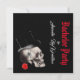 Um design moderno incomum de festa de despedida solteiro gótica, de motoqueiro ou de rock, preto e vermelho, com um noivo caveira gótico perfeito para eventos e festas alternativas. Obtenha um visual coordenado sofisticado e legal para os materiais essenciais da sua data de casamento visitando a Loja de Casamentos Personalizados para conjuntos combinando.