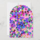 Pintura artística vibrante e caprichosa com confetes coloridos. Amor mítico entre o Arlequim e Colombina, pintura em acrílico inspirada na Commedia dell'Arte - Veneza. Cores verde, amarelo, rosa e roxo brilhantes. Fácil de personalizar como anúncio de festa de casamento, save-the-date romântico de noivado, chá de noiva, aniversários, festa de 16 anos, festas de Quinceañera, aniversário de casamento, brindes de celebração de Ano Novo, agradecimento, cartões de lugar ou praticamente qualquer evento que você desejar!
