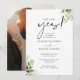 Este convite de festa de compromisso floral verde elegante pode ser personalizado com suas informações em tipografia chic com sua foto no verso. Projetado por Thisisnotme©